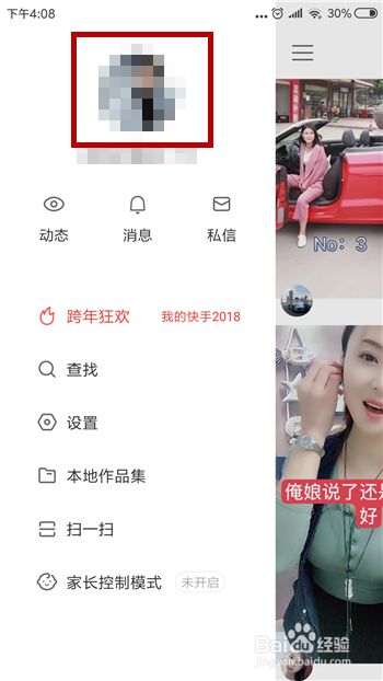 打开更多界面后找到账号头像并点击打开快手小我本家儿页。