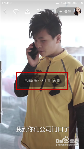 保藏后返回播放界面会提醒我们【已添加到小我本家儿页-保藏】,接下来就打开小我本家儿页。