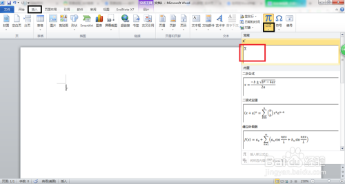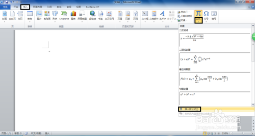 下次要输入X一横时,点击【插入】,再点击【公式】的下拉三角形,就可以看到X一横了,直接点击就可以利用了。