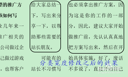 如许对话框中每一栏后面的宽度和间距就妙手动更改了,也就是图一中的这几个选项,更改完当作今后我们会看到图二所示的结果,如许即可随意更改分类的宽度了;