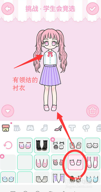 装扮少女游戏第34关是学生会竞选,加入竞选那就要显得正式,稳重,穿上率领结的衬衣是最好的选择