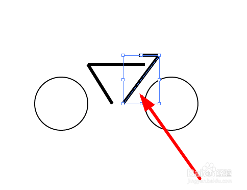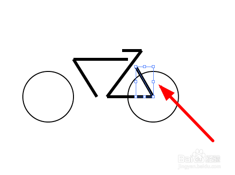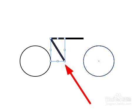 在直线的左侧锚点起头,再次绘制一条直线段,直到两个圆的中间线上。