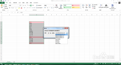 在前提格局中,选择凸起显示单位格法则,并选择反复值,如下图所示。