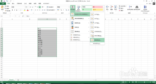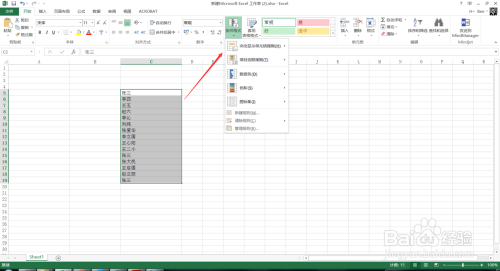 然后我们选择中一列数据,点击开始菜单中的前提格局,如下图所示。