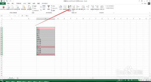 下一步,选择数据中的删除反复项,如下图所示。