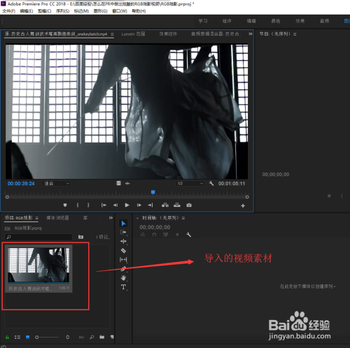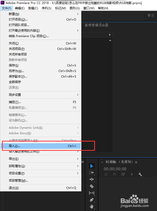 打开文件菜单栏,在文件菜单栏中有个导入号令,单击选择导入号令弹出素材导入窗口,选择一个视频素材导入到PR项目窗口中。