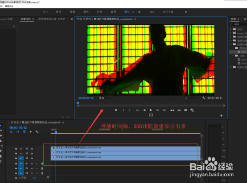 将三个视频前方错位多出的剪失落删除,最终播放视频,一个RGB残影的视频结果就呈现了。