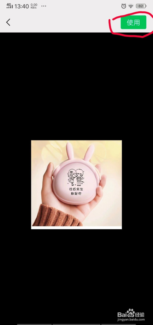 点击图片图片图标后,我们就进入手机相册,选摘要作为脸色的图片,点击图片,这时图片上方显示利用按钮,我们点击“利用”按钮,如下图所示。
