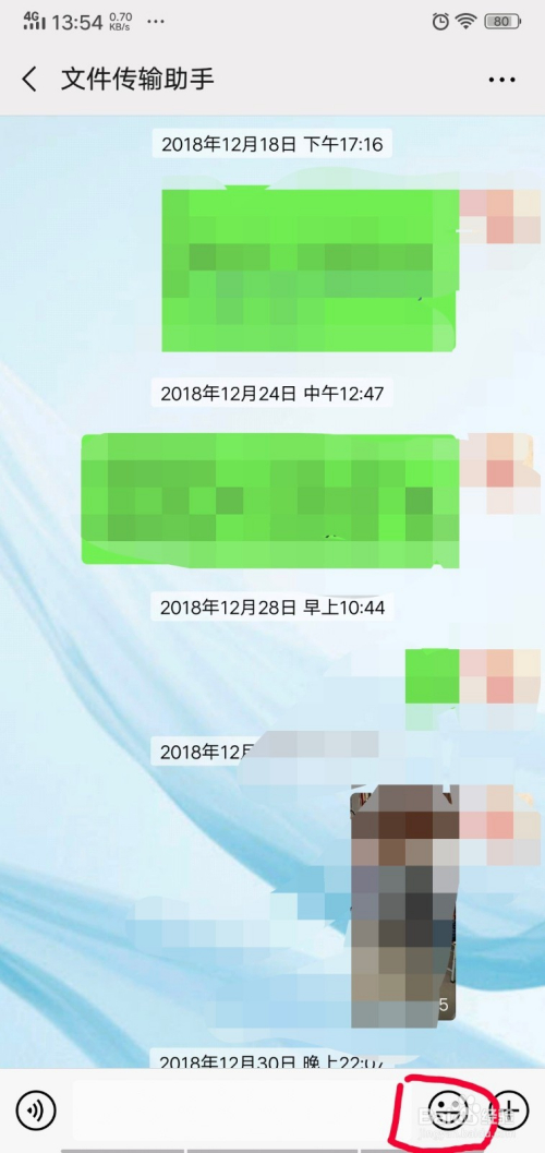 点击手机桌面上的微信图片,进入微信本家儿页,打开肆意的微信聊天对话框,点击对话框里的脸色图标,如下图所示。