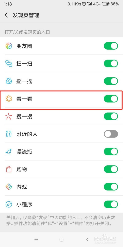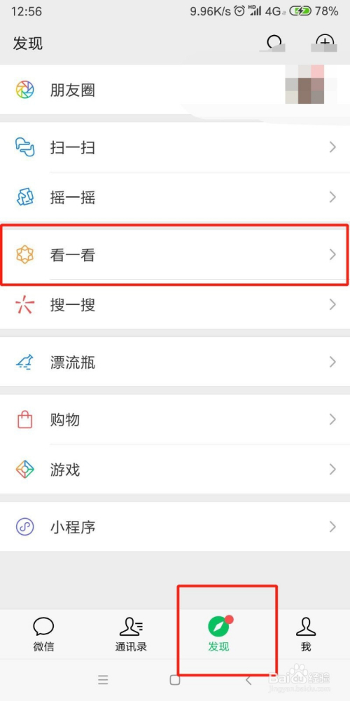 打开 看一看 功能后,看一看将在 发现页面显示