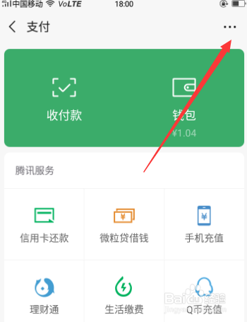 其次就是在右上方的三个点的菜单,点击最下方的“刊出微信付出”。