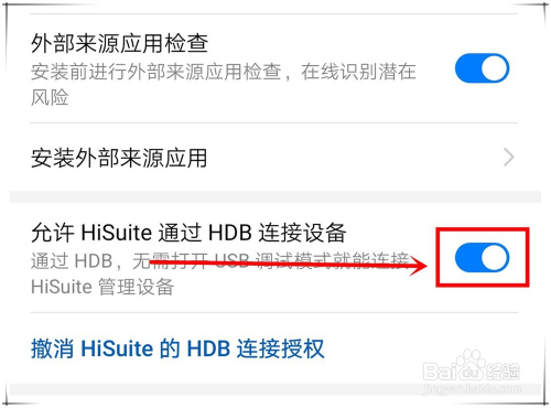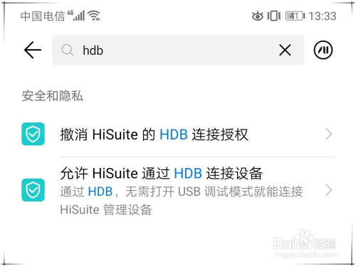 华为p10plus毗连电脑第三步:在搜刮竣事中,选择“许可Hisuite经由过程HDB毗连设备”,在跳转的页面中,将该选项后的开关打开。