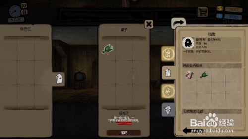 <1/4>在放德律风的阿谁桌子上找到卡牌和骰子,收集雅各布好赌的特征。