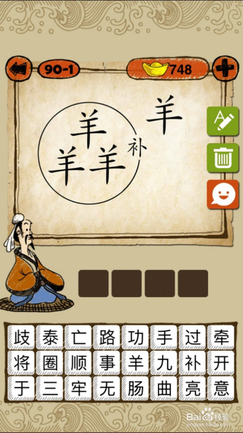 当作语玩命猜第90-1关,如下图, 丢了一只羊之后,把缺口补上,谜底亡羊补牢。