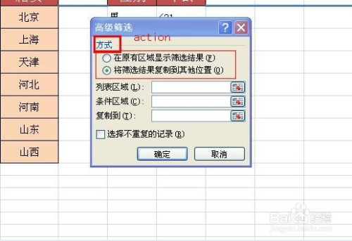 Action即过滤的体例,本家儿要有两个值可用,别离是xlFilterInPlace、xlFilterCopy,前者暗示过滤后数据仍放在本来的处所,后者指将筛选成果复制到后面CopyToRange参数指定的处所。