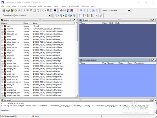 在modelsim 中,该软件本家儿要有5个部门,菜单栏、快捷键东西栏、库文件栏、工程项目栏、历程栏等,下面还有一个输出栏。经由过程操作几个部门的功能,就能完当作一些仿真功能。