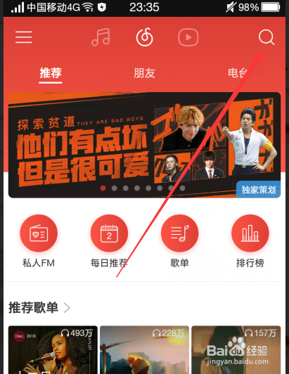 登录当作功后大师点击网易云音乐本家儿页面右上角的搜刮标记