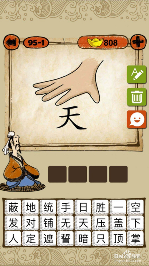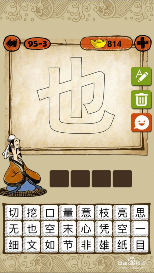 当作语玩命猜第95-3关,如下图, “也”中心空空的,谜底一无所有。