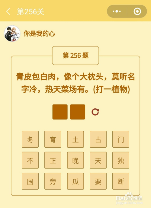 第256关谜底是冬瓜。