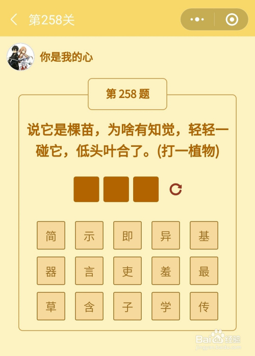 第258关谜底是害羞草。