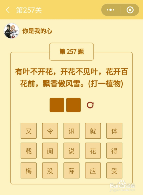 第257关谜底是梅花。