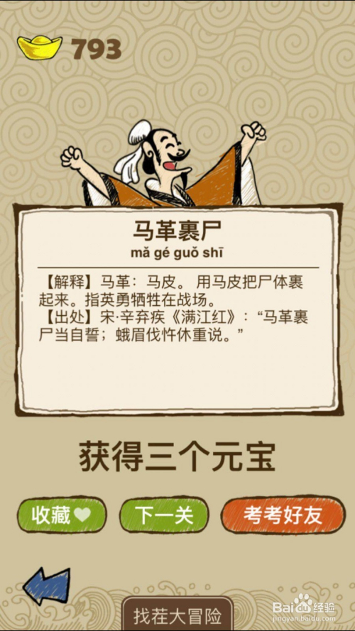 当作语玩命猜第93-3关,如下图, “马”字里有个“尸”,谜底捐躯疆场。