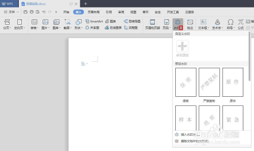 第二步:在菜单栏“插入”中找到“水印”选项。
