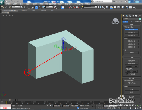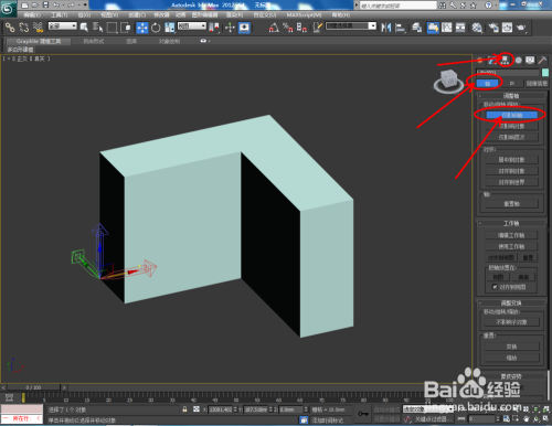 选中模子,点击【条理】-【轴】-【仅影响轴】后,此时模子的轴变为可调整状况,鼠标拉动模子轴到恰当的位置放置好(如图所示);