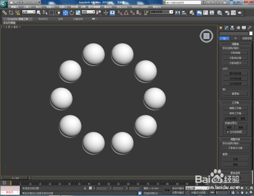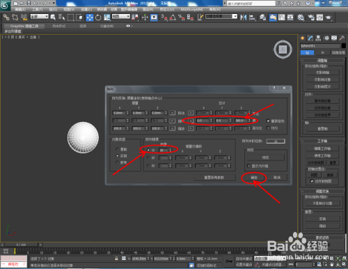 调整好轴的位置后,我们可以对模子进行镜像、阵列等操作。选中模子,点击【镜像】-【复制】,建造出另一个球体模子。点击【东西】-【阵列】,按图示设置好阵列参数,完当作模子阵列;