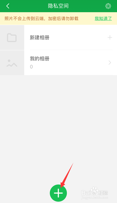 进入隐私空间的设置页面,点击下方的【+】