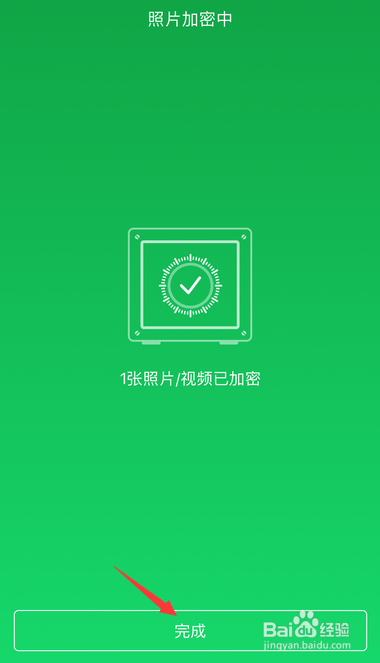 进入照片视频的加密过程傍边,静静期待即可,点击【完当作】