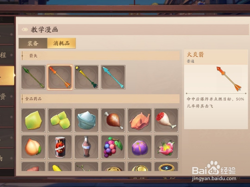 进犯类的有弓,高级的就是紫色弓,箭有良多种,通俗细木箭没有加当作结果,火炎箭有持续火焰灼烧结果。