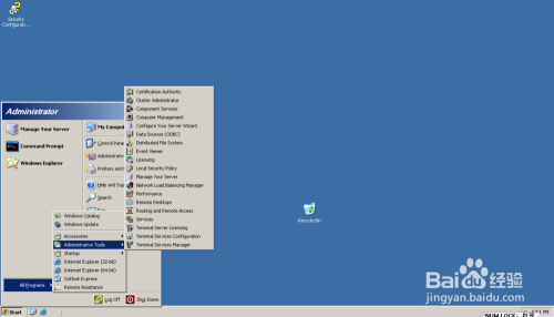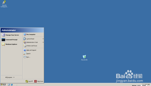 点击Windows Server 2003系统桌面底部的开始菜单;