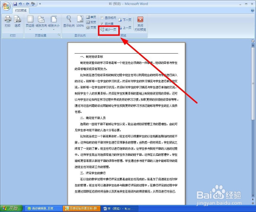在打印预览页面有个“预览”项,上面有个“削减一页”,我们单击