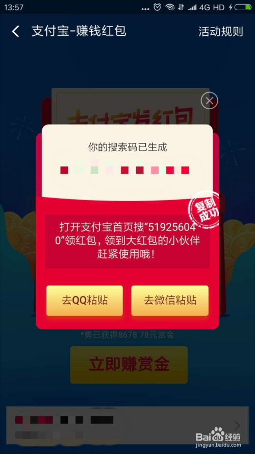 系统会给出我们的红包搜刮码。