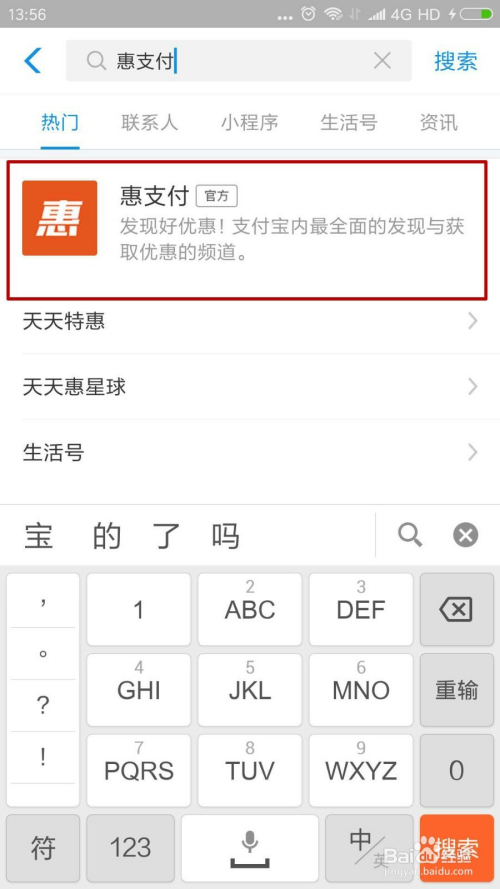 我们在搜刮栏输入“惠付出”,然后点击第一个搜刮成果。