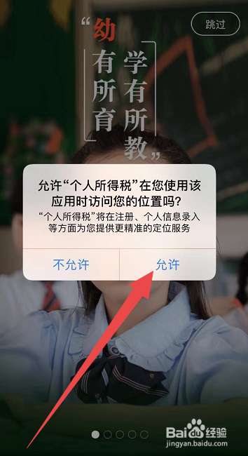 之后会呈现弹框显示是否许可小我所得税app获取您的位置,点击许可即可。