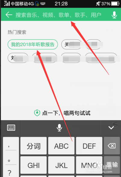 然后点击热点搜刮下的【我的208年听歌陈述】,当然没找到的话可以测验考试直接搜刮