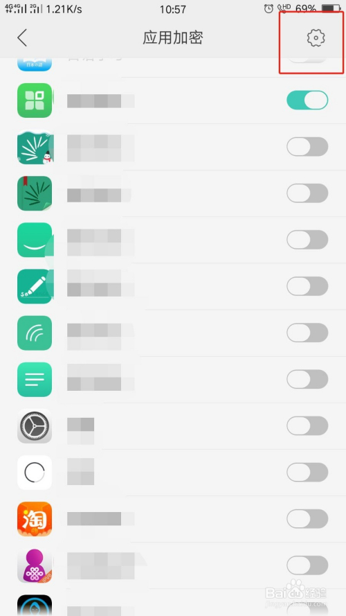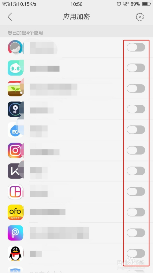 第四步:找到你想要加密的应用,打开后面的开关,就可以加密此应用