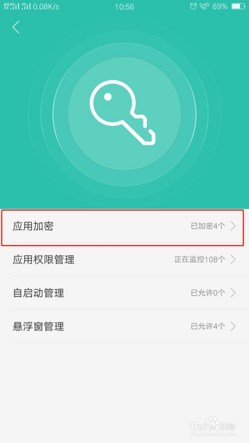第三步:点击第一个"应用加密",对应用进行加密。经由过程九点图形,绘制一个你喜好的密码