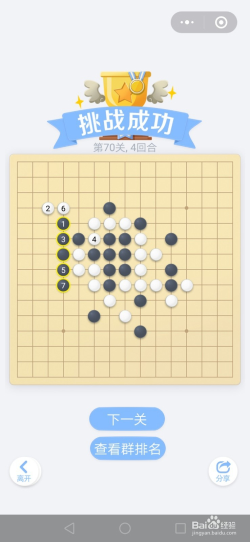 第70关按照下图中黑棋上的数字挨次下棋就能过关。