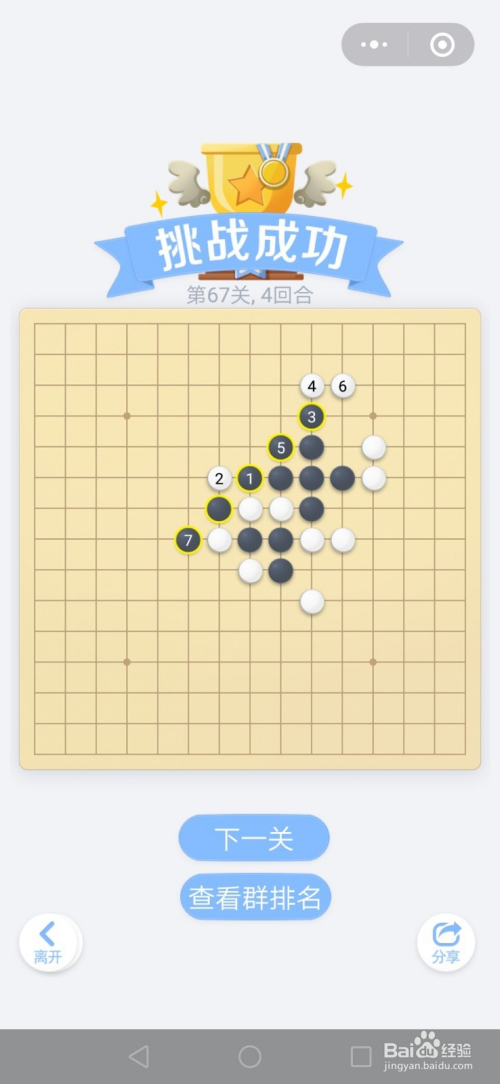 第67关按照下图中黑棋上的数字挨次下棋就能过关。