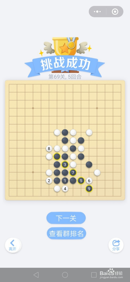 第69关按照下图中黑棋上的数字挨次下棋就能过关。