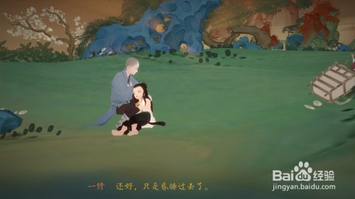 接下来需要用鲛人泪救活小僧人,拖动物品栏的鲛人泪到小僧人身上,然后小僧人醒了,墨言因为过度劳顿睡着了。
