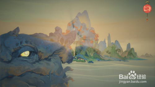 进步到右一个神灵的头上,这应该是个龙,然后将苍之军号拖动到上边的龙角上,然后龙就醒了,下方的龙嘴张开,可以看到里边有颗发光的珠子。