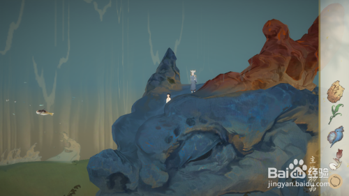 在碰到过不去的山堆之后,墨言可以进入到海水中泅水,然后就进入到上边的空间,然后站在上边的山堆上,山堆上会有祭坛,将龟甲拖动到祭坛中,山堆就会崩塌,进步的路就打通了。