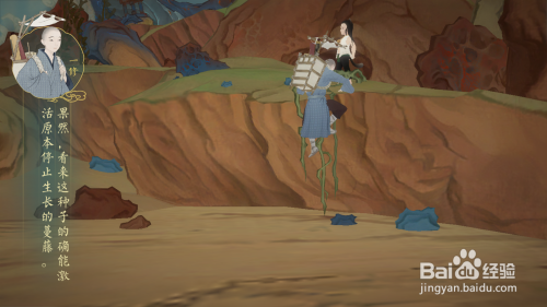 接着在山堆边有个蔓藤枝,将蔓藤种子拖动到蔓藤枝上,然后蔓藤就会延长到下边,这个时辰小僧人就可以攀爬蔓藤上来了。
