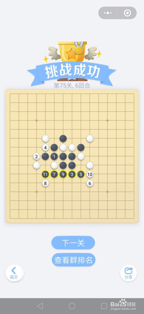 第75关按照下图中黑棋上的数字挨次下棋就能过关。