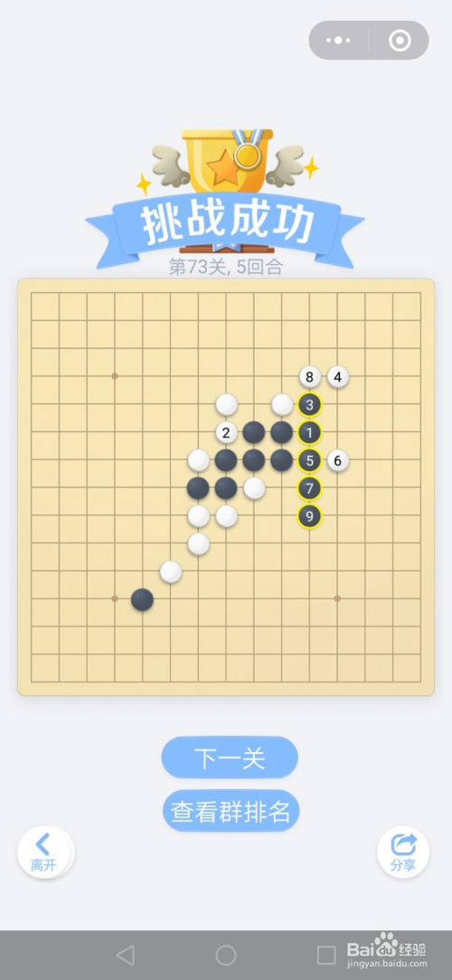 第73关按照下图中黑棋上的数字挨次下棋就能过关。