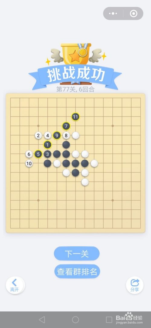 第77关按照下图中黑棋上的数字挨次下棋就能过关。